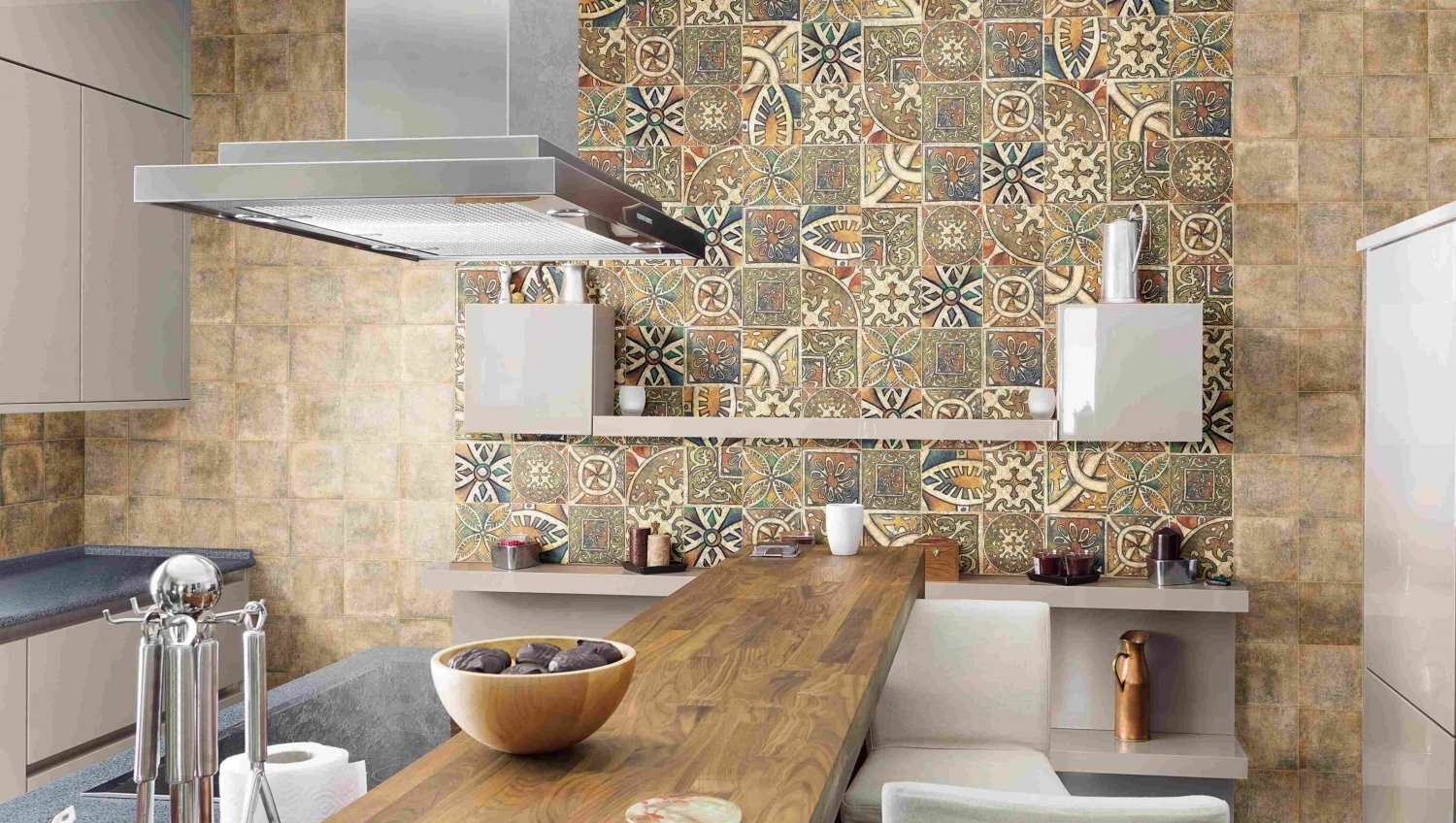 Dacă sunteți de părerea că bucătăria nu este un loc pentru plictiseală, atunci puteți să vă diversificați interiorul cu plăci de mozaic din colecția Medievo, folosind motive exotice de folclor din Africa și Maroc pentru a transmite atmosfera unică. Această gresie va umple camera de bucătărie, dând un caracter jucăuș întregului interior.