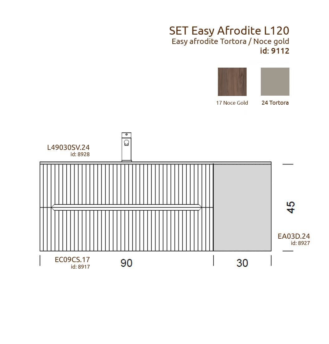 Mobilier de baie Set Easy Afrodite Tortora / Noce gold (L120)